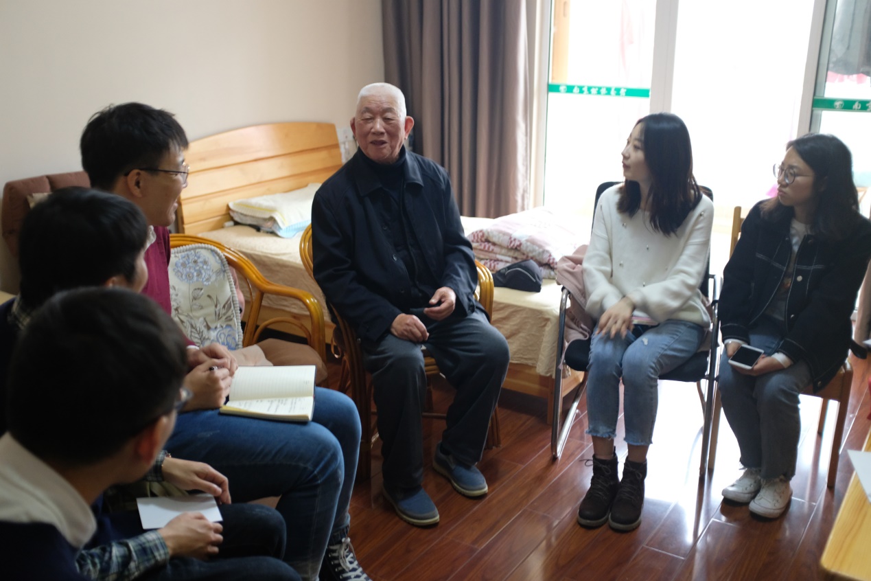 为庆祝新中国成立70周年,响应党中央开展第二批"不忘初心,牢记使命"主题教育活动号召,深入学习贯彻胡金波书记在太阳成tyc122cc"不忘初心、牢记使命"主题教育动员大会上的重要讲话精神,11月17日,2018级中国史硕士生党支部前往养老院,拜访了荣获中共中央国务院、中央军委颁发的"庆祝中华人民共和国成立七十周年纪念章"的姜平教授。