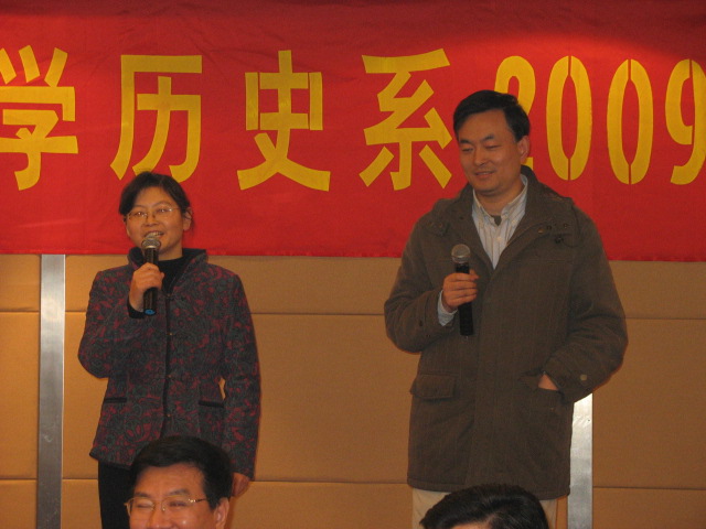 风雨送春归,飞雪迎春到! 新春佳节即将来临,而老师们已提前感受到了节日的氛围。 一月七日晚上,西苑宾馆百合厅里人头攒动,暖意融融,历史系教师欢聚一堂,把酒言欢!历史系教师2009年迎新晚会也在这里举行。 多年来对历史系发展给以大力支持的公司发展委员会施建军董事长,还有多位员工及历史系离退休老同志也应邀参加了晚会。 晚上六点半晚会正式开始。 首先由孙江林书记对过去一年历史系工作进行了简单的总结。