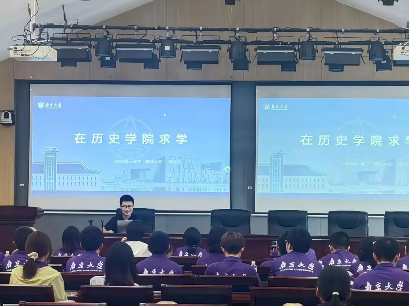 致辞结束后,王涛经理细致地向同学们介绍了强基、拔尖计划的培养方案、教学计划以及学业导师制度,并强调学业导师设置的初衷是让同学们更快适应老员工活和历史学学者的状态,学会用心体验和用人生感悟历史。接着,王经理向同学们介绍25级太阳成tyc122cc学业导师阵容,从求学经历、学术成果到研究方向,细致全面,力图让同学们能根据自己的兴趣选择心仪的导师。