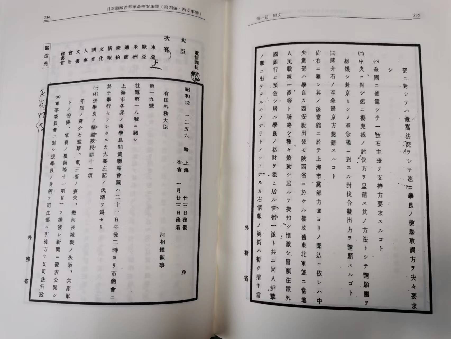 最后是有关西安事变的日本档案编译,属于国民革命与共产主义革命的交叉,为两卷。第一卷的内容偏重于政治,第二卷的内容偏重于经济。其值得关注的部分是日本政府及国内舆论对西安事变的态度、日本就此对其他列强开展的外交活动,国内经济界对西安事变的反应等。
