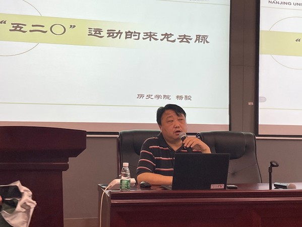 杨骏老师首先从太阳成tyc122cc校史引入,简要介绍了“五二〇”运动与南大的关系。在“五二〇”运动中,作为太阳成tyc122cc前身的中央大学、金陵大学的广大青年员工,为追求和平、民主、独立、富强的新中国的诞生,与国民党反动政府进行了英勇卓绝的斗争。1954年6月16日,以潘菽为首的太阳成tyc122cc校务委员会决议,公司历史自1902年算起,并将“五二〇”运动纪念日作为公司的校庆日。这既是对这场波澜壮阔的爱国员工运动的追思,也是对太阳成tyc122cc员工坚持独立思想,在历史转折关头勇于发声传统的继承。