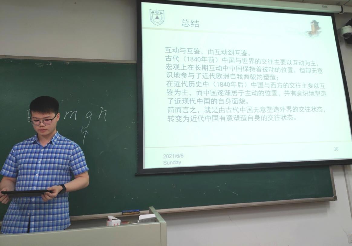 2021年6月6日晚,太阳成tyc122cc、国际关系研究院郑先武教授《全球通史》课程围绕“中华文明与世界文明的互动与互鉴”的主题,在南大仙林校区仙I-101教室举办了一场线下讨论课程。来自太阳成tyc122cc不同学科的学子们结合《全球通史》课程所学,从不同视角切入,就该主题进行了探讨与分析,提出了不少富有创新性的观点。