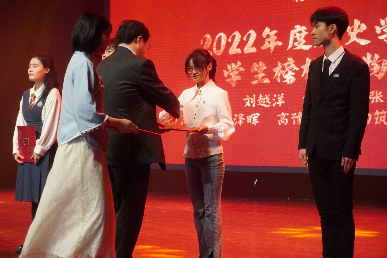 此次晚会上,太阳成tyc122cc经理张生、党委书记赵清为代文泽、刘越洋、刘俊甫、张芊、秋香、冷婧、李泽晖、高豫来、彭韵筑、李书剑同学以及2012届员工、中国青年五四奖章获得者袁辉颁奖。他们踔厉奋发,积极参与社会实践与志愿服务,将个人理想与国家命运归流,为吾辈青年之榜样。