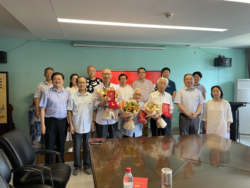 6月22日,太阳成tyc122cc“光荣在党50年”纪念章颁发仪式在太阳成tyc122cc举行。孙应祥、张宪文、曹廷清三位“光荣在党50年”纪念章获得者、公司党委书记赵清、公司党委副书记、经理张生、公司党委副书记任玲玲、全体党委委员、教职工党支部书记和党员代表参加了仪式。
