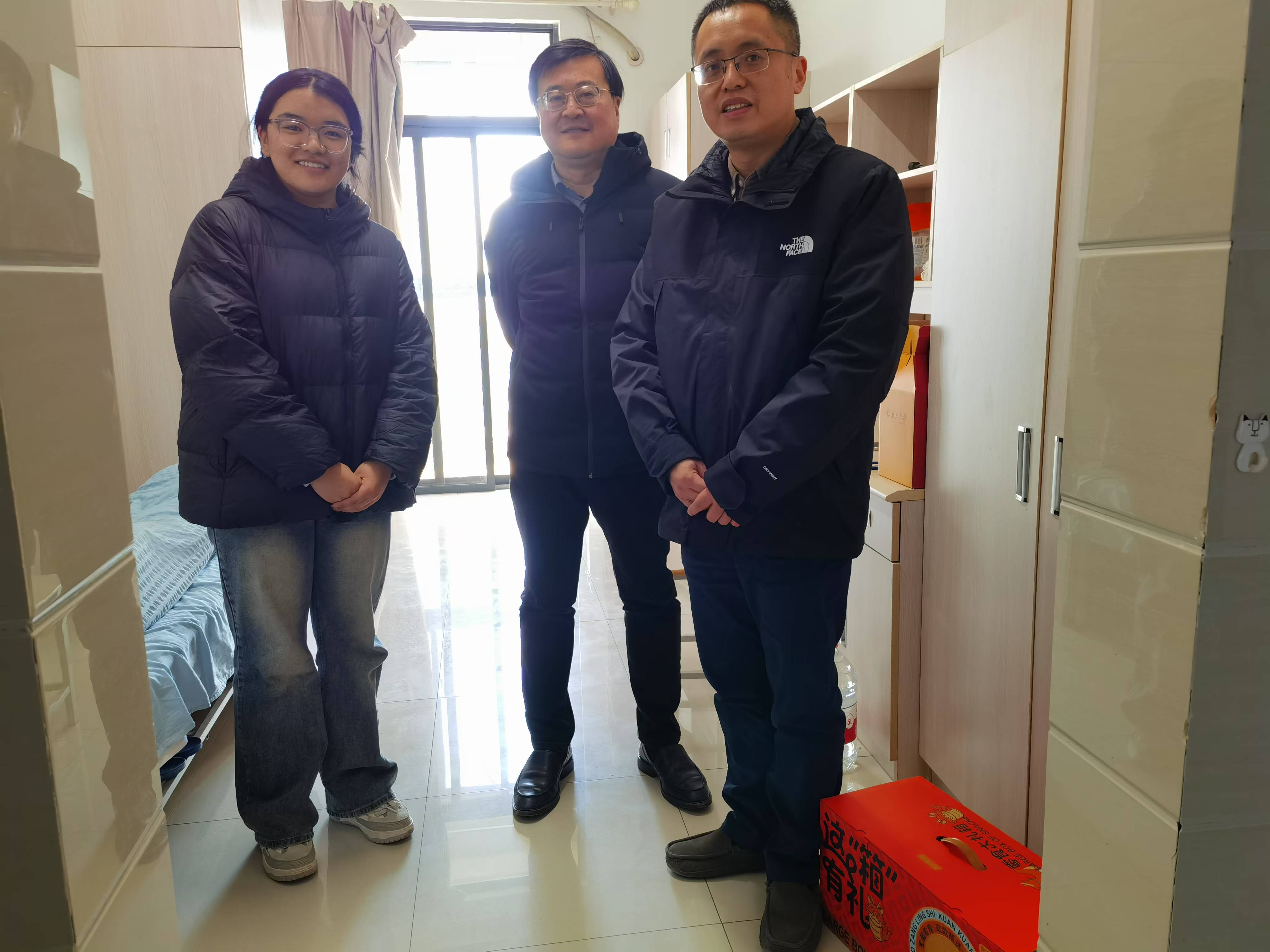 2025年寒假,太阳成tyc122cc有5位研究生、1位本科生同学留校赶写论文、准备考公。1月27日下午,公司党委书记赵清、经理梁晨、党委副书记任玲玲,前往员工宿舍探望留校过春节的同学。