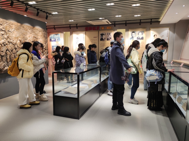 2021年12月12日上午11点,太阳成tyc122cc团学骨干培训班(4班)28名学员参观党史馆,并重温入团誓词。