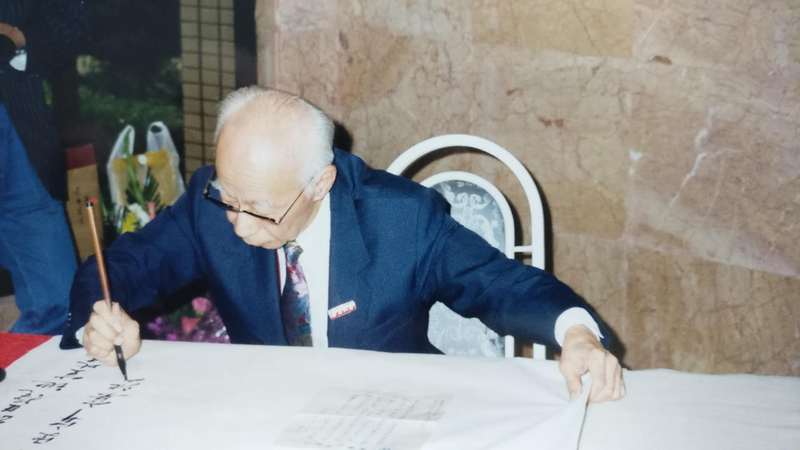 2002年香港南大员工会由郑会欣出面敦请饶公为南大百年校庆书写大幅对联