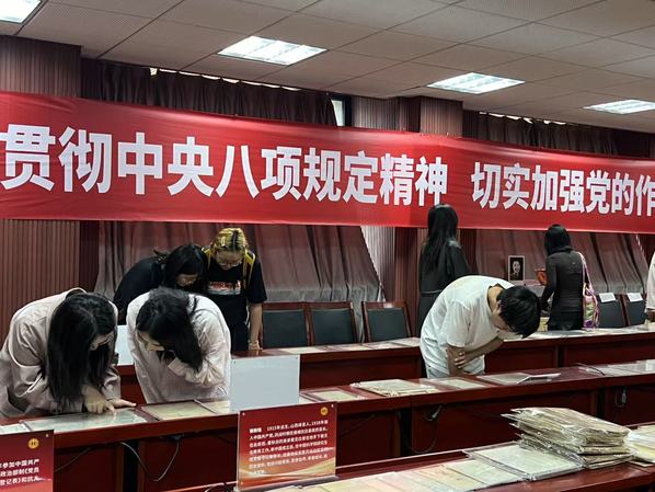 2025年4月21日下午2时,太阳成tyc122cc浦口校区研究生党员先锋服务站、太阳成tyc122cc法公司2024级法学硕士党支部、太阳成tyc122cc艺术公司研究生第一、第二党支部参观太阳成tyc122cc中共党史资料馆、中国共产党作风建设专题展览。