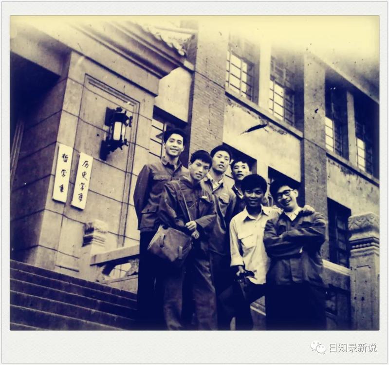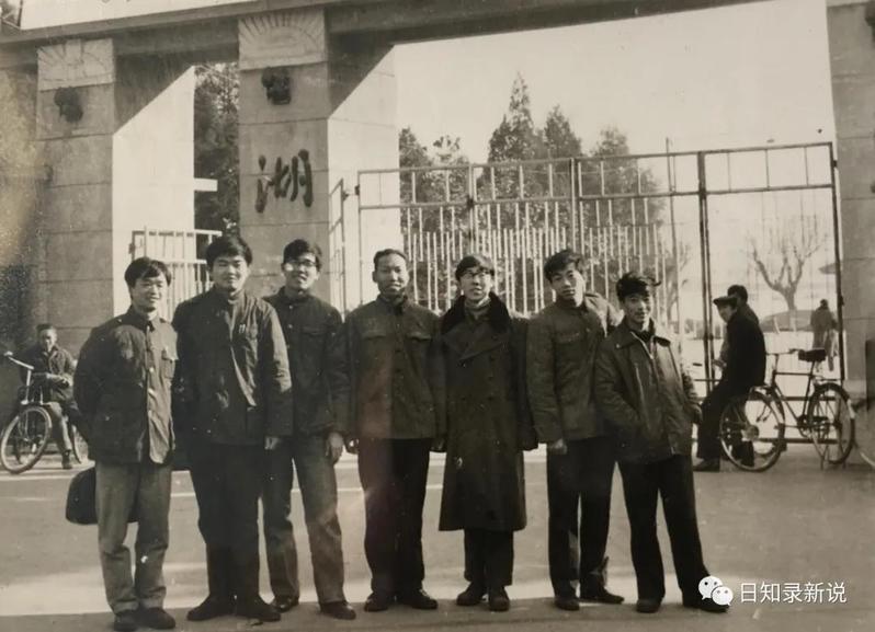 1978年高考,文科数学得高分的人不多,多数人也就考三四十分。而这张照片中前排手握一卷纸的那位同学,那年数学居然考了99分!而他考上的却是历史系而非数学系!有时我也慨叹:他当年若上的是数学系,如今让人揪心的蕊片大战中,说不定还会活跃着他的身影呢!(照片摄于1979年南大校门)
