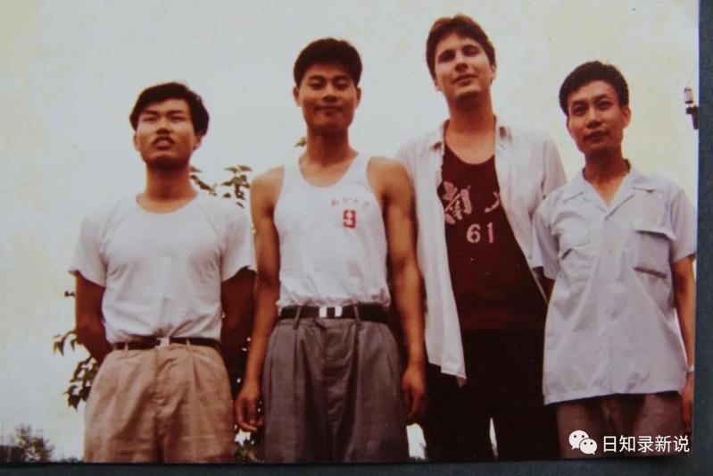 中国式教育,总是用身边糟糕的人物吓唬孩子,也用身边优秀的人物鞭策孩子。沈建钢(右二)是村里第一个考上大学的人,在十里八乡轰动一时。那时村里人去赶集,也会骄傲地对邻村老乡说:“我们村建钢考上大学啦!”透着与有荣焉的表情。家家户户教育孩子好好读书,都在说同样的话:“你看看人家建钢,多有出息!你得好好学习,才能像他那样考上大学!”(照片摄于南大校门)