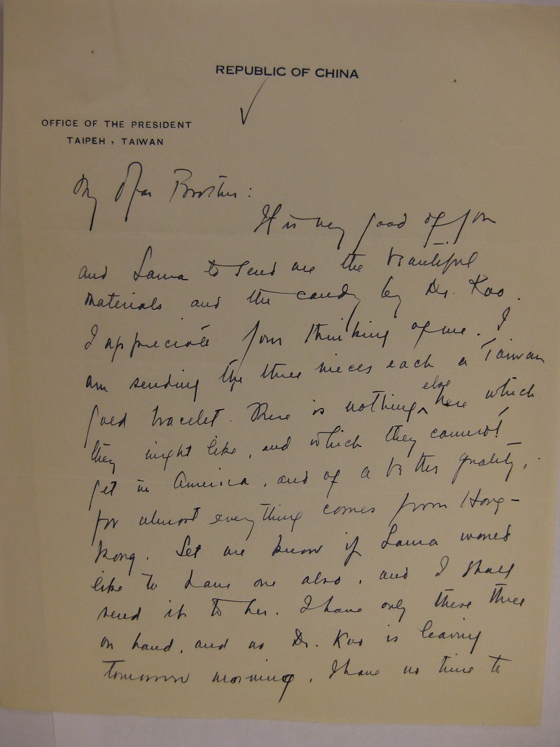 是2014年10月22日上午。吴老师叩门而入,毕业后我在校部机关工作,一直不曾见过吴老师,我几乎认不出他来:高高的个子,穿蓝色制服,戴蓝色的毛线帽子,直观的印象是脸色明显缺少血色,但吴老师说话底气很足,语言表述特别清晰。我看过吴老师写的回忆文章《南园八号》,其实吴老师至少在1949年5月就是中央大学历史系的员工,后因肺结核在南园八号休养了较长一段时间,后通过手术治愈。吴老师那天来告诉我两件事情,一是他把二号新村的房子卖掉了,准备到无锡亲戚家安度晚年(吴老师没有子女),他写了一个报告,希望他到无锡以后,看病的发票能回公司按规定报销;吴老师还说他有一千多册书,想捐给系里。闲谈中,吴老师说到他参与张宪文老师组织编撰的五卷本《宋美龄文集》,说,在宋美玲的书信中,有些英文书写比较潦草,翻译时容易出错,他是如何矫正的。此后,我与同事谈及此事,大家都异口同声地说,吴老师的英语水平确实非常高。
