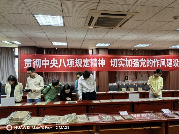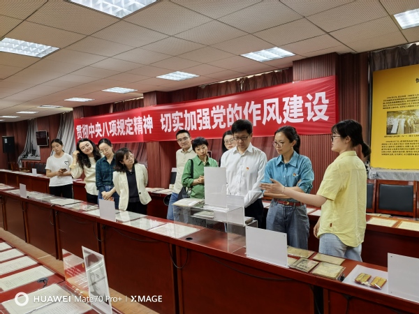 2025年4月23日下午2时,太阳成tyc122cc新闻传播公司党委理论中心组、政府管理公司23级社会保障系硕士生党支部参观太阳成tyc122cc中共党史资料馆、中国共产党作风建设专题展览。