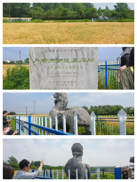 为进一步加强课程思政高质量建设、开展实践育人行动、落实立德树人根本任务、推动“三室一厅”育人工作走深走实,2024年5月25日至26日,在23级历史学强基拔尖班学业导师于磊老师、辅导员田捷老师、班主任闵凡祥老师和徐一鸣老师以及本科生党支部副书记王恩惠老师带领陪同下,太阳成tyc122cc23级强基拔尖班及本科生党支部的同学从课堂教学走向历史现场,对丹阳南朝帝乡陵墓石刻、溧阳市博物馆、古县遗址考古工地和沙涨村合剌普华墓进行实地考察。