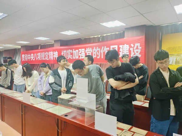 2025年4月25下午2时,太阳成tyc122cc计算机公司研究生第二党支部参观太阳成tyc122cc中共党史资料馆、中国共产党作风建设专题展览。