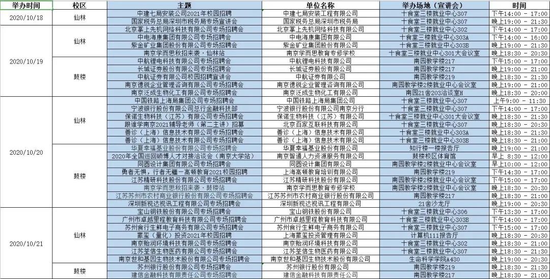 为了帮助同学们更好地了解掌握招聘信息,找到理想工作,现将10月18日至10月25日招聘活动公布出来。