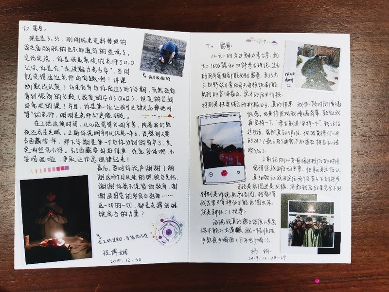 有人说,教师是一件苦差事,除了繁重的教学任务之外,还有很重的科研压力;还有人说,教师像是被套上了一个“紧箍咒”,自己的言行举止处处都要做到“为人师表”。但是,张老师深知身为教师的喜悦,每当看到员工们充满学习欲望的眼神得到了满足,每当得知教学实践得到了员工们的认同,每当听说毕业员工在工作的岗位上发展得很好,他内心的满足感无法言表。从2008年入职至今,张老师一直坚守教学第一线,本科课程量巨大,平均每学年开设五门本科课程,累计授课课时超过4000个学时,而且每年都要带领考古专业的员工到野外进行考古实习教学,累计野外教学天数达到了857天。从湖北大坪遗址、小河墓群到安徽谷阳城遗址、磨盘山遗址,再到河南新砦遗址、辛村遗址,都留下了他和员工们点点滴滴的汗水,也留下了满满的、美好的回忆。因为实习期间,师生的吃、住、教学都在一起,所以老师要有多重身份,不仅仅是教师,还是家长,是朋友。历届员工,都亲切地称呼张敬雷老师为“雷哥”。雷哥也留下来很多“雷言雷语”,比如:“考古人都是处女座,就是要有一些强迫症”、“考古关键时候需要坚持一下”、“不放弃、不抛弃,让每个同学都能坐上考古这班车”、“雷哥是块砖,哪里需要哪里搬”、“学不好就把你们做成标本,我手里的这个颅骨标本就是你们不好好学习的师兄”等等。