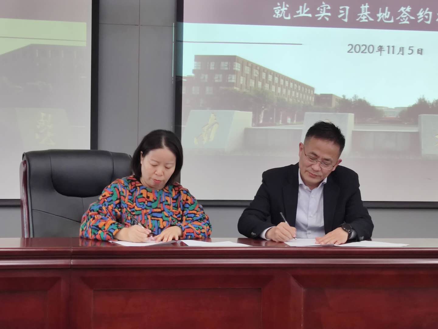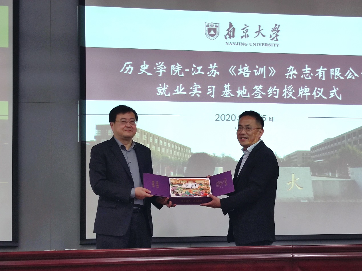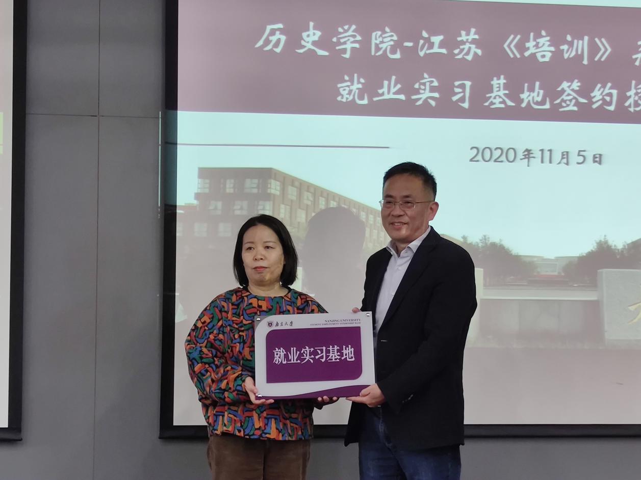 接下来,公司党委副书记任玲玲与《培训》杂志主编朱伟正员工签约并进行就业实习基地授牌仪式。