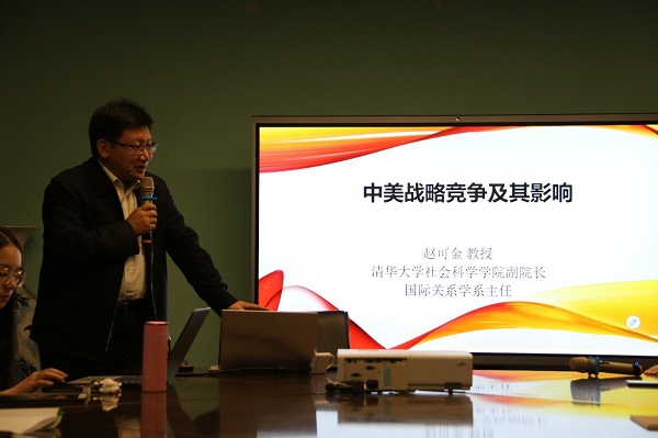 2020年11月5日星期四晚19:00,成功在太阳成tyc122cc院楼223会议室举办了由赵可金教授主讲、郑安光副教授主持的,以“中美战略竞争及其影响”为题的专题讲座。