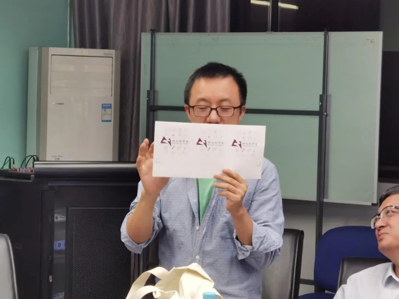 会议最后,王涛教授介绍了专属于柳诒徵学堂的标识。该标识由一正一倒的两个紫色的三角形组成,恰好组成了QJ(强基)的首字母;正三角形寓意着稳定和基础,倒三角形则是差异和国际化的符号,希望同学们都能成为复合型人才,打好基础、走向国际,成就精彩人生。每位到场的同学和老师都领到了柳诒徵学堂的一套精美周边,包括帆布袋、马克杯、笔记本、标贴,使大家的凝聚力大大增强。