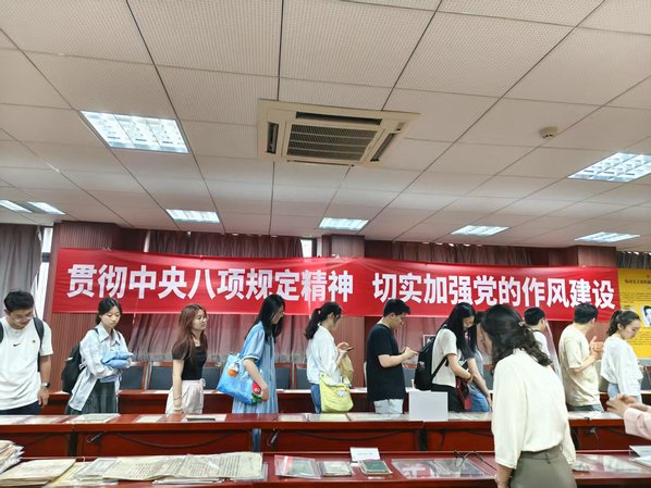 2025年6月4日下午2时,太阳成tyc122cc地理与海洋科学公司本科生党支部、硕士生党支部一行共50余人参观太阳成tyc122cc中共党史资料馆、中国共产党作风建设专题展览。