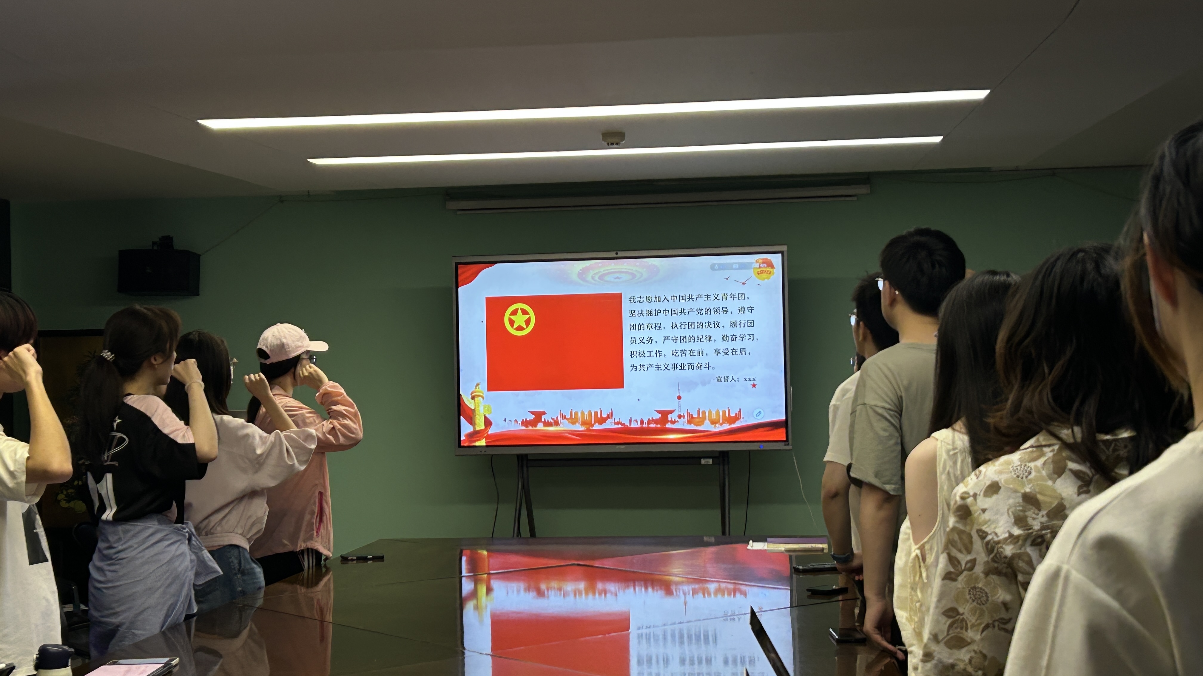 最后,全体成员起立,奏唱中国共产主义青年团团歌《光荣啊,中国共青团》。激昂的旋律和响亮的歌声,表达了同学们对共青团组织的热爱与责任担当,也寄托了青年一代守护国家安全、强国有我的坚定信念,为本次团日活动画上了圆满句号。