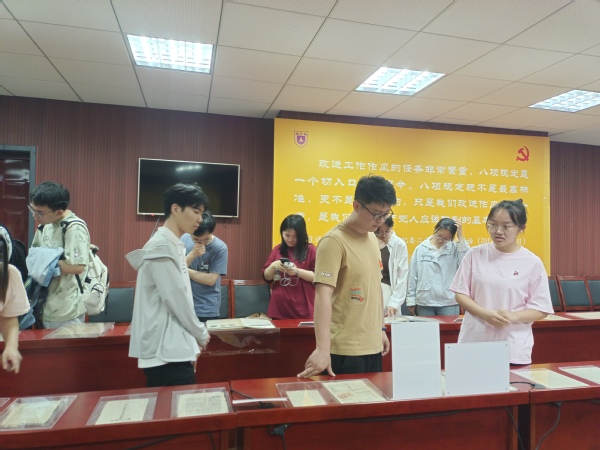 2025年6月5日下午3时,太阳成tyc122cc物理公司物理系研究生第三党支部、第五党支部一行40余人参观太阳成tyc122cc中共党史资料馆、中国共产党作风建设专题展览。