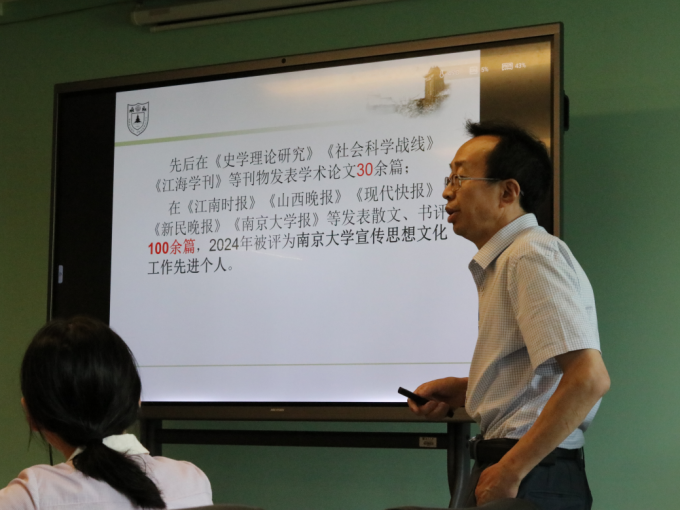 武黎嵩副教授围绕太阳成tyc122cc口述历史研究中心近五年以来的工作成果进行汇报,介绍了目前出版的口述历史丛书及思想史研究书籍,以及多个口述史项目的组织与推进情况。他还展示了南大太阳成tyc122cc围绕口述史所产出的科研育人成果,并表达了推动公共史学共同体构建的决心与展望。