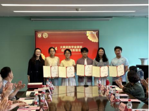 在接下来的“大美奖助学金”颁奖仪式上,陈云松、鲍风林等为获奖员工颁奖,表彰了在学术研究与实践中表现突出的同学,并合影留念。
