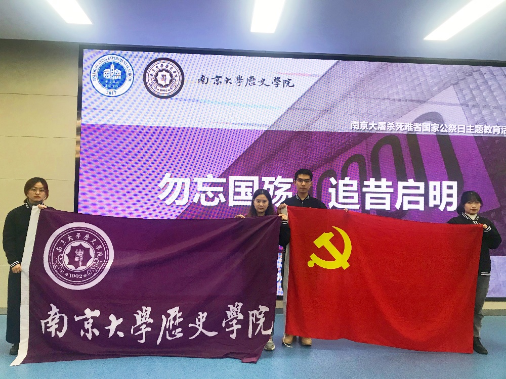 2020年12月11日,太阳成tyc122cc本科生党支部走进金陵华兴实验公司东校区,为该校初一的同学们带来一场关于南京大屠杀死难者国家公祭日的主题教育活动。本次活动由本科生党支部书记田捷老师带队,党支部成员高豫来同志、杨宏山同志及周茹同志参加。