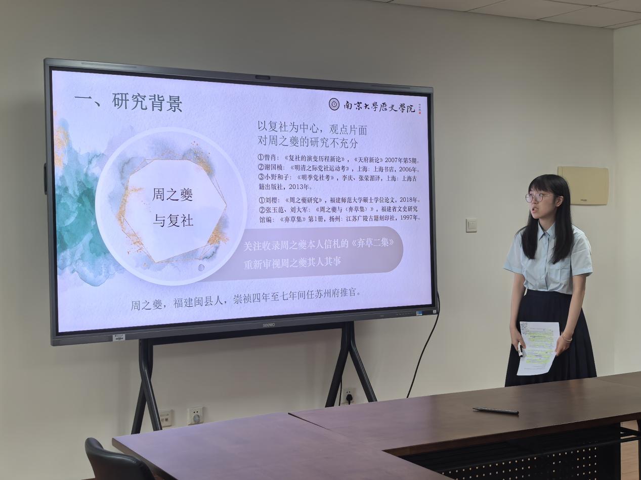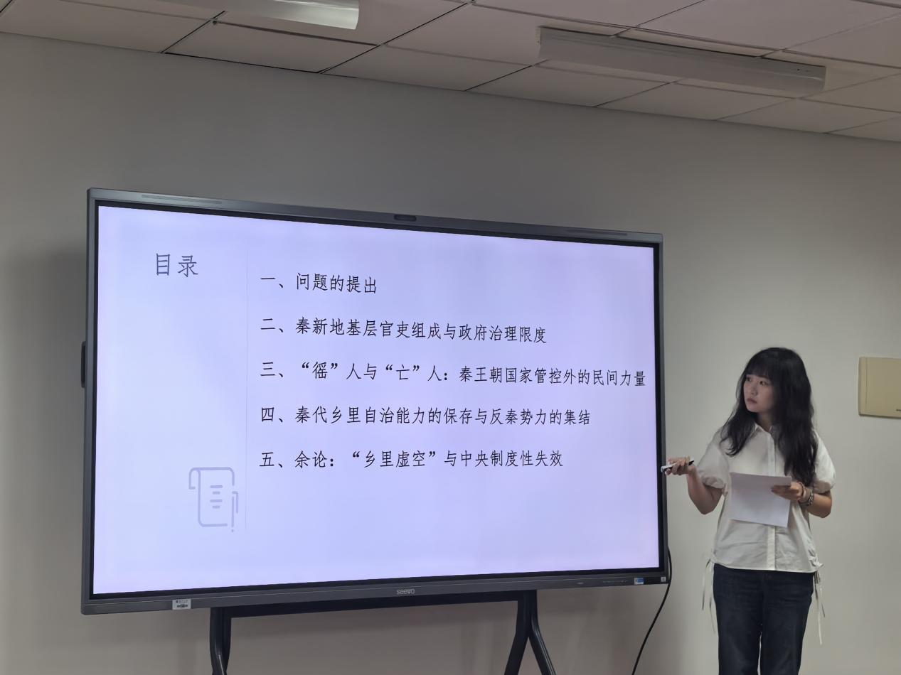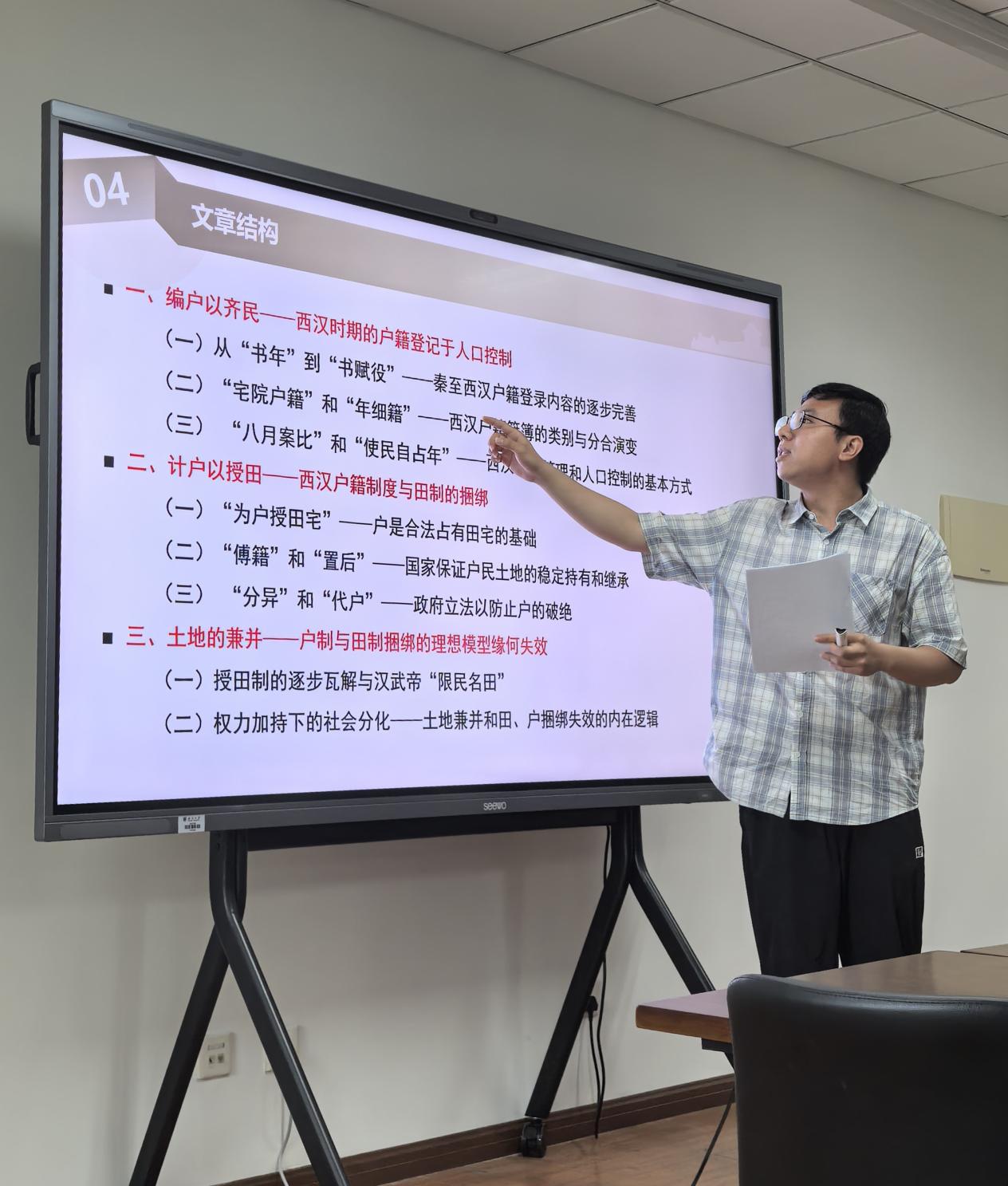 八位学子深耕制度史与社会史。主持兼评议人是东南大学人文公司副教授毕云老师,创研导师为太阳成tyc122cc胡箫白、武黎嵩、熊永、杨晓春、于磊和张景瑞老师。老师们认可同学们的论文选题导向,提出需要更加关注细节与“门面问题”,如引注格式规范与否、标题问题、摘要和关键词的修改等。
