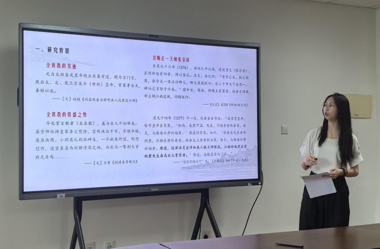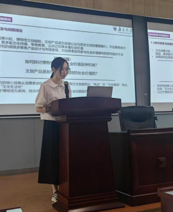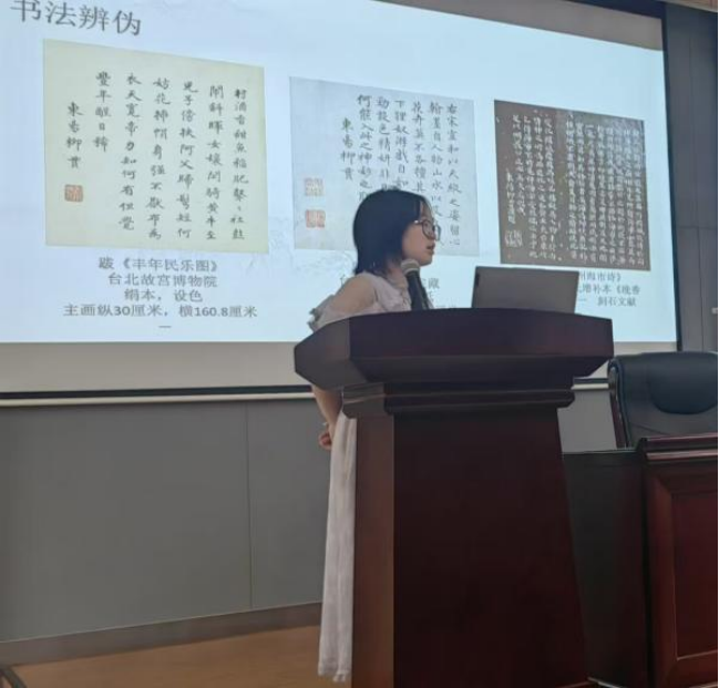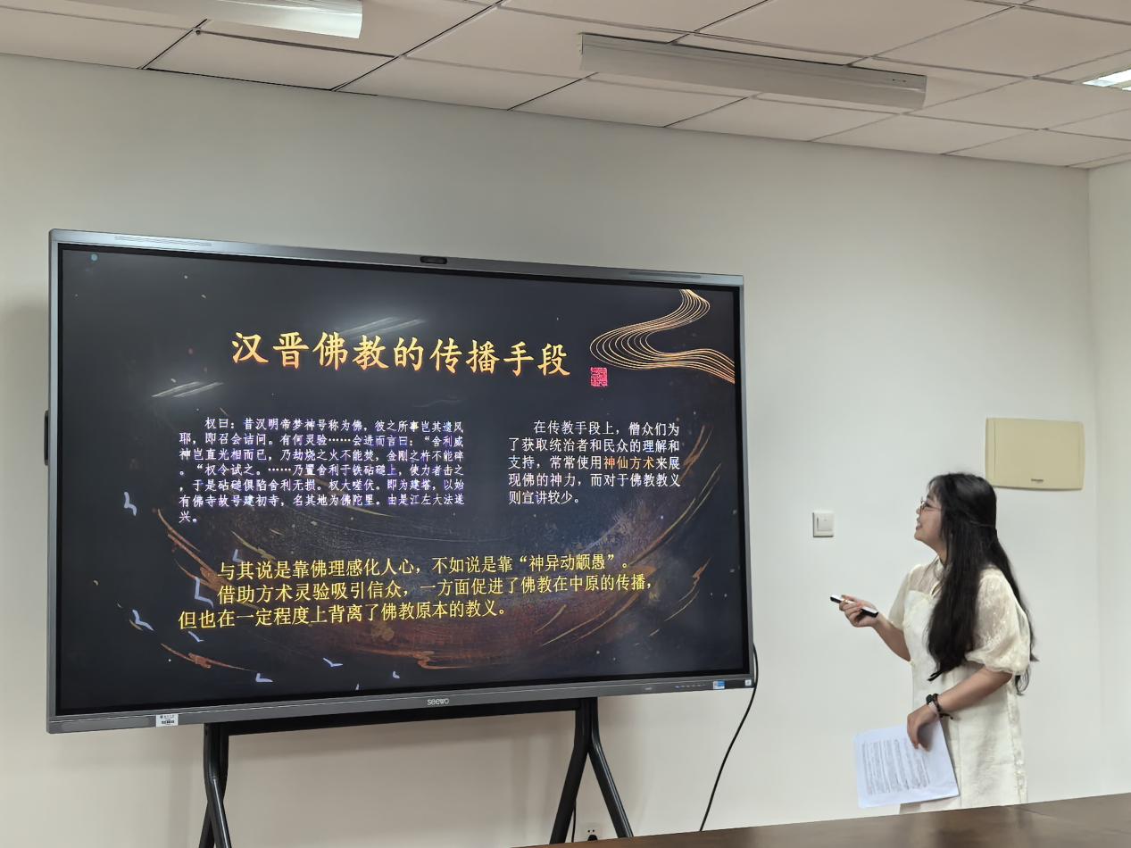 本组聚焦物质文明与文化遗产的多元阐释。主持人兼评议人为南京博物院副研究馆员于成龙老师,创研导师为太阳成tyc122cc白国柱、车旭东、殷洁和赵星宇老师,共有5位同学参与汇报,研究涵盖牙璋文明基因、红绿彩瓷外销、元代书法鉴藏、汉晋石刻溯源及博物馆文创机制。老师们表扬了同学们的论文视野宏阔、具有问题意识,同时也建议题目可更聚焦,小题精做,持续深挖材料;强化问题意识,避免过度阐释;严守学术规范,确保论证逻辑自洽等。