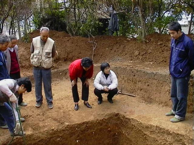 秋季的发掘则很不顺利,因为上工的事动不动就闹工潮,中间张老师有事回南京,我一个人苦撑着,员工们说话稍有不慎就招来了敌对情绪,一个员工在争吵中被人推搡,虽然事件已经平息,张老师回来听说后,径直走到村长家里,厉声训斥:“你们敢打人吗?”“不敢。”“你们能赶我们走吗?”“不能。”接下来应该就是上党课了。结果第二天村长就站在土堆上朝着带头闹事的曹姓人家叫骂:“老子是共产党员,你们家也有党员,摸摸自己的良心,还有没有党性。你们把这湾子的名声搞臭了……。”于是乎,直到我们收队基本没有大事发生,用张老师的话说,西线无战事。2001年在巫山江东嘴遗址发掘时,遇上个村霸对我们的工作百般阻挠,站在张老师面前吵闹,一点道理听不进,张老师就急了,胸脯一拍:“我是三十年党龄的共产党员!”那凶神恶煞的家伙慌张地后退了两步。一个有党性、讲原则、一身凛然正气的共产党员才会有这样的威慑力。当年他带78级考古专业员工到山西陶寺实习,在一次参观回去的路上,大家又累又饿,实在走不动了,张老师高举一根树枝,领着大家边走边喊号子,高唱革命歌曲,斗志昂扬走回了住地,为此师兄们认为他有大帅风度。