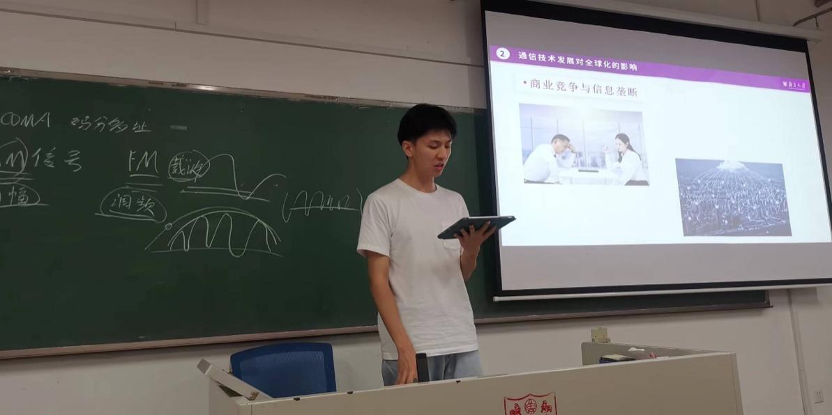 第四小组同学聚焦通信技术的发展与其对全球化的影响,大致介绍了通信技术从有线电报、无线广播、移动电话系统、模拟通信等发展历程,还详细介绍了从“1G时代”到“5G时代”的技术突破。在对通信技术发展梳理的基础上,他们进一步分析提出通信技术发展改变了人们信息获取的渠道,引发了商业竞争与信息垄断,构建了世界经济政治秩序,以及完善了管理体系。