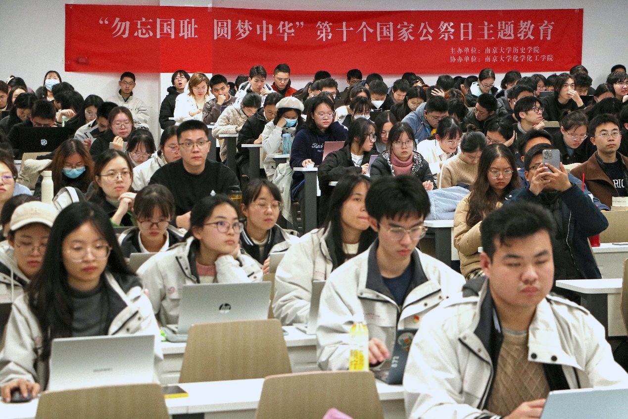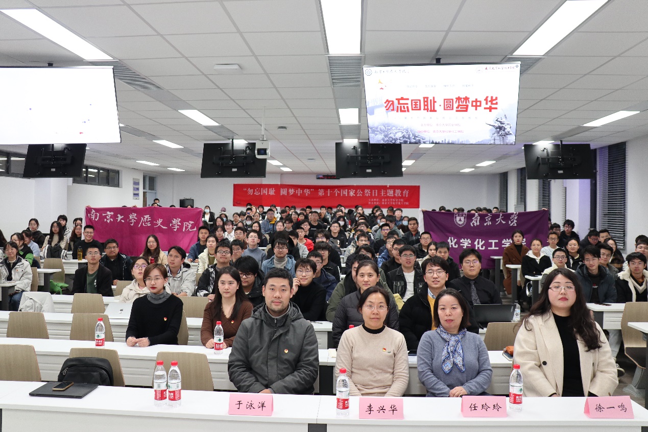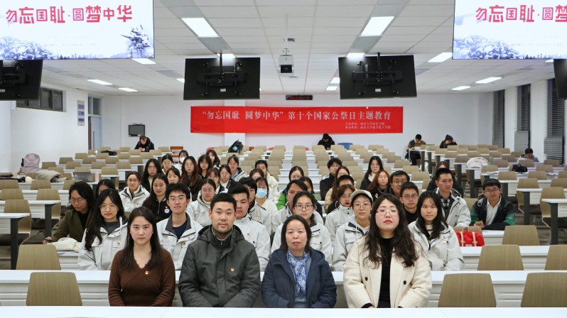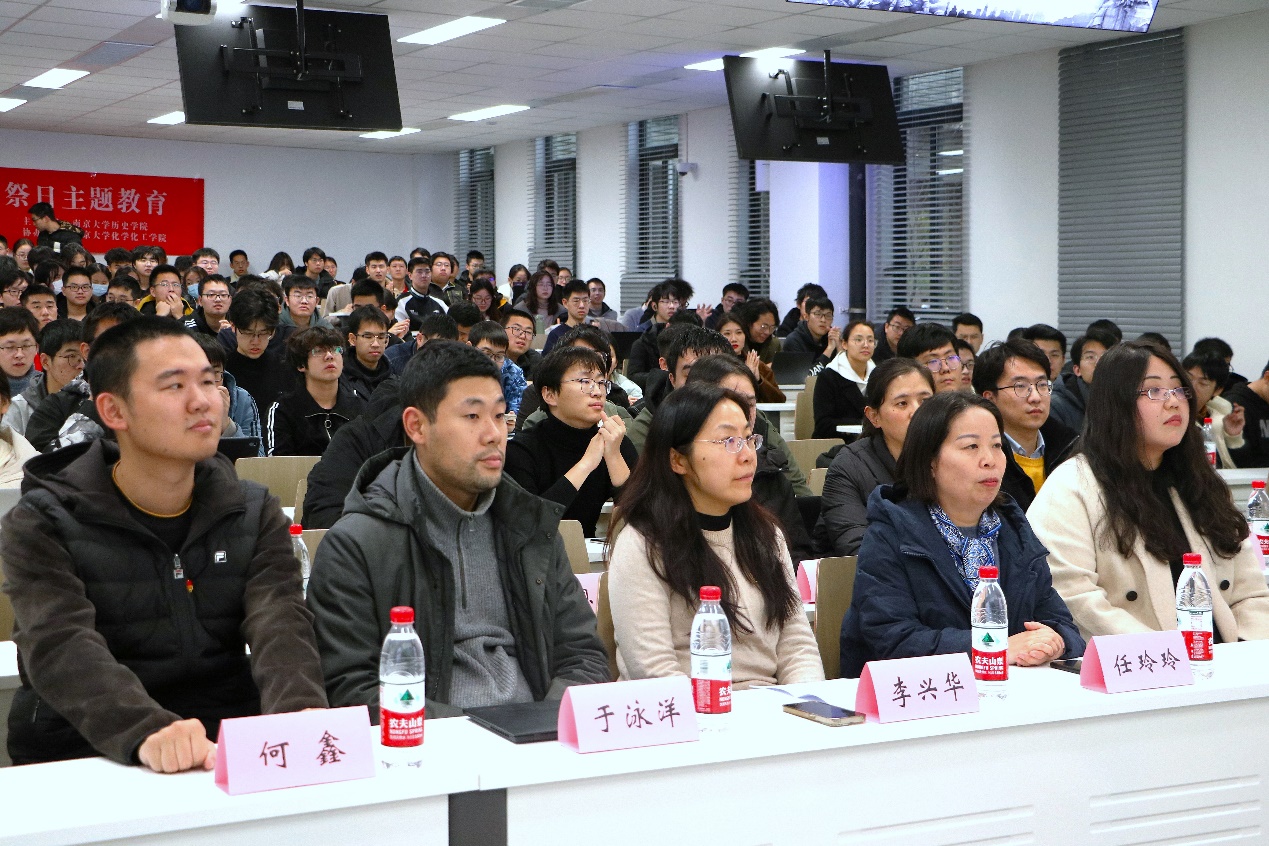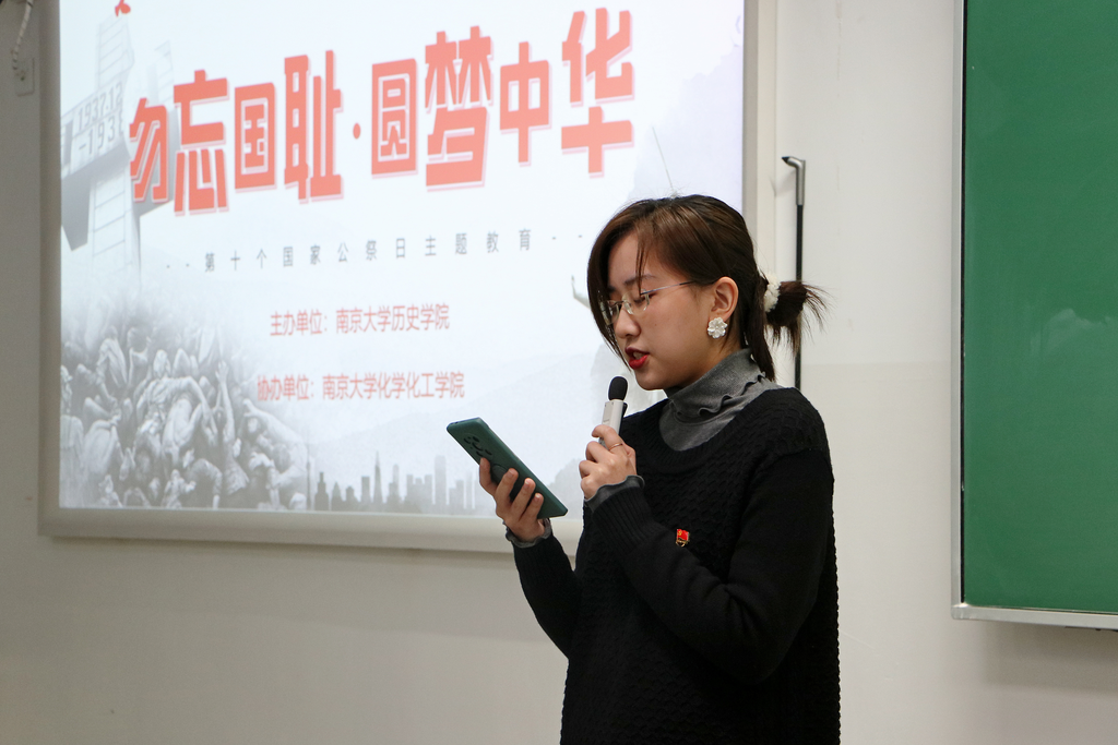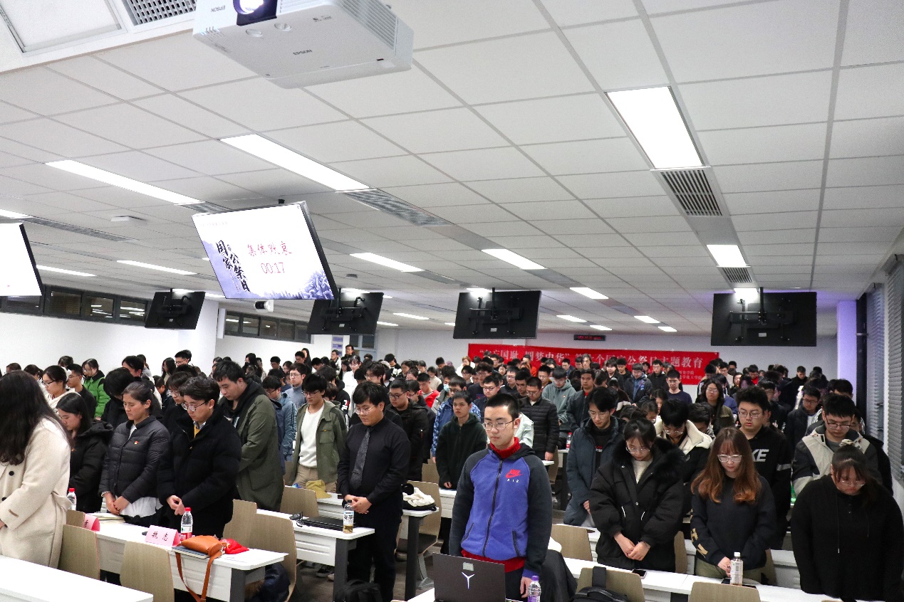 寒风瑟瑟,哀思绵绵。为悼念南京大屠杀死难者和所有惨遭日本侵略者杀戮的死难同胞,牢记国家遭受战争灾难的沉痛历史,坚定“反对侵略战争,捍卫人类尊严,维护世界和平”的意识,2023年12月13日,在第十个南京大屠杀死难者国家公祭日、南京大屠杀死难同胞86周年祭,太阳成tyc122cc本科生党支部协同化学化工公司开展“勿忘国耻•圆梦中华”主题教育活动,邀请中国史博士、太阳成tyc122cc助理研究员、本科生2023级班主任徐一鸣作题为《南京大屠杀期间的金陵大学》的讲座。