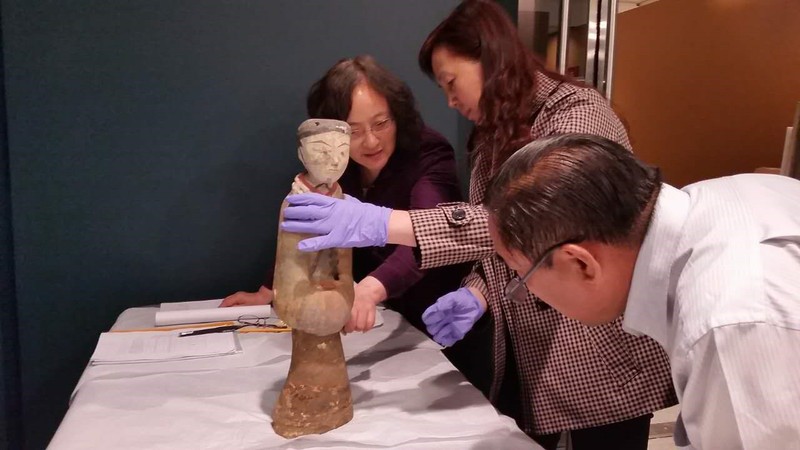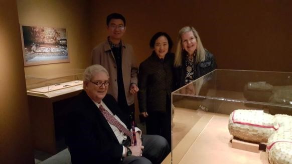 2017年5月展览开幕式时我已是“名誉馆长”,赴美过程一波三折。中方由江苏省文物局殷连生副局长为团长,率省局、徐州市文广局和徐州博物馆人员组成代表团出席开幕式。不料在办理我的签证文件时,市外办具体工作人员说“二线”干部不再安排出访。过去经常办外展我和外办领导非常熟悉,致电后表明我作为专业人员出访没有问题。但是马上又出现第二个问题,规定出访一个国家的时间只有5天,但是海馆长为我安排的是近10天行程,而且学术讲座等海报已经张贴,想压缩行程已不可能。最后协商不使用公务护照,办理因私护照单独赴美。旅程由禄口机场经香港转机,但是当时全国东部地区经常大面积飞机航班延误,我乘的航班毫无悬念也延误了,我尚未登机香港那个航班已经起飞了。我马上和航空公司联系,告诉我说有个预案,在香港下机时听从穿红马甲的工作人员安排。抵港后说安排我坐当天最后一个飞纽约的航班,但衔接的时间太紧。要经两次安检,距登机口又很远。当我匆匆登机后,机舱马上就关闭了。抵达纽瓦克机场已是深夜,刚出海关不免心中茫然。此间我并沒有和海馆长联系,但细心的海馆长可能查询得知航班延误,已经安排工作人员在机场接我了,顿觉轻松和释然。