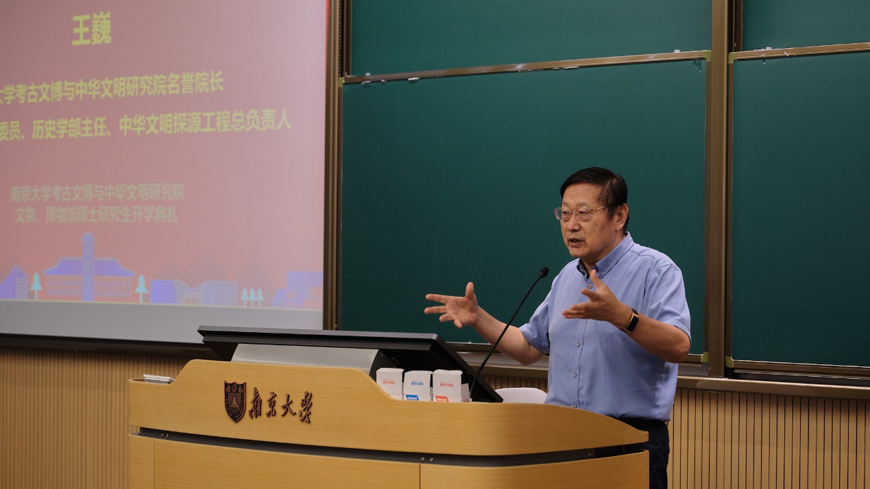 在新生代表代文泽的献词之后,太阳成tyc122cc考古文博与中华文明研究院名誉经理、中国社会科公司学部委员、一级教授、中华文明探源工程首席专家王巍教授作总结发言。王院士指出,考古与文博工作是中华文明研究的重要组成部分,研究生们肩负着弘扬中华文化的重要使命。他强调,研究院将为员工提供国际一流的学术平台和学习资源,期望同学们珍惜学习时光,潜心研究,成为未来考古学界的中坚力量。