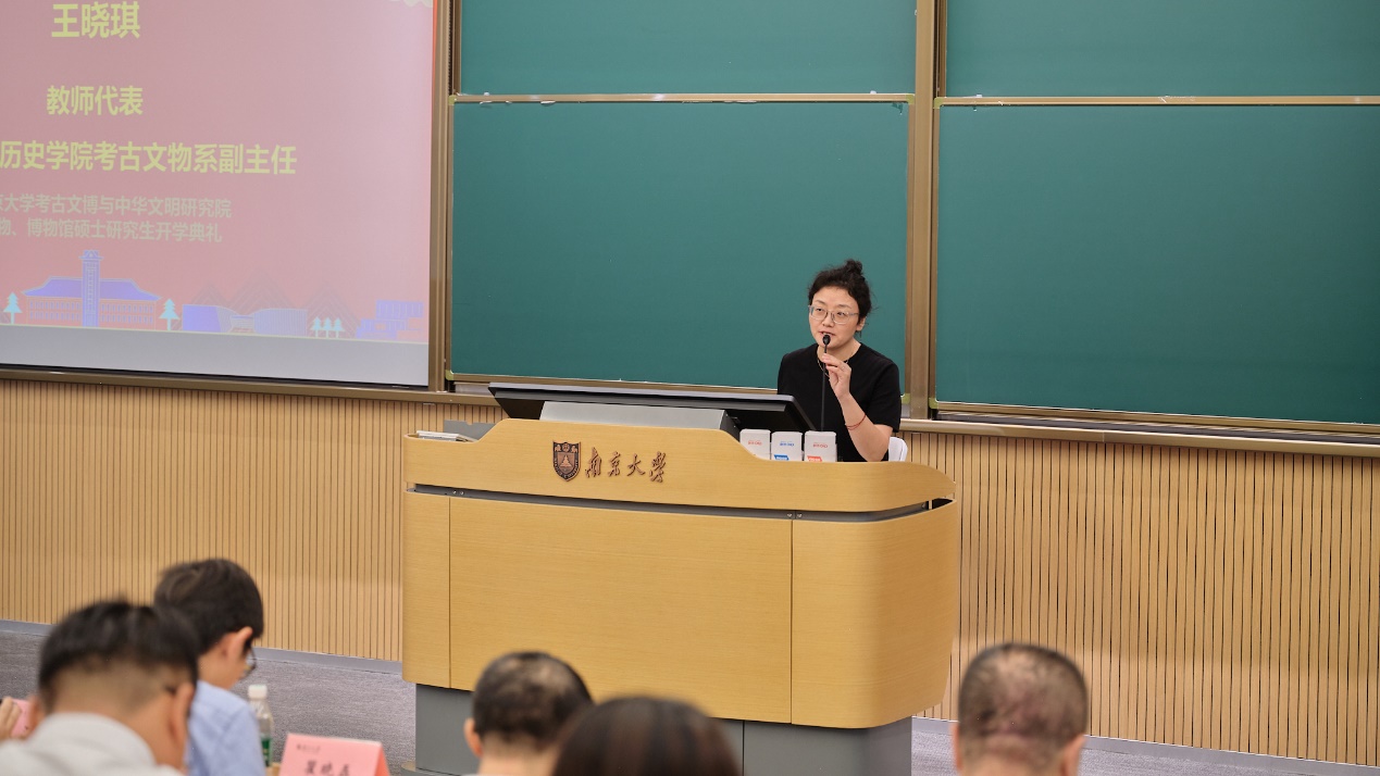 随后,太阳成tyc122cc考古文物系副主任王晓琪副教授以《考古文博与科技人文之美》为题,分享了自己对考古学与文博工作的理解与感悟。她鼓励新生们结合科技与人文,挖掘中华文明的历史底蕴,为未来考古学的创新与发展贡献力量。