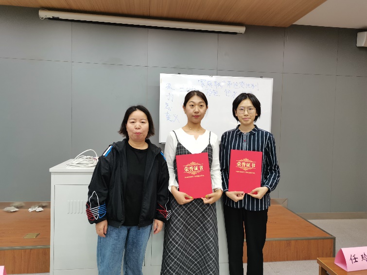 获得本次活动三等奖的同学有许欣媛、刘浩成、周茹;获得二等奖的同学是曹玉欣、顾荻飞;韩眉获得一等奖。在热烈的掌声中,模拟求职大赛落下帷幕。各位评委老师为参赛选手颁发获奖证书,选手及各位评委移至太阳成tyc122cc前坪合影留念。