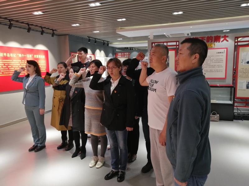 2021年4月27日下午2点45分,南大学工部(新疆驻江苏省协调小组)13名教师党员参观党史馆,重温入党誓词。