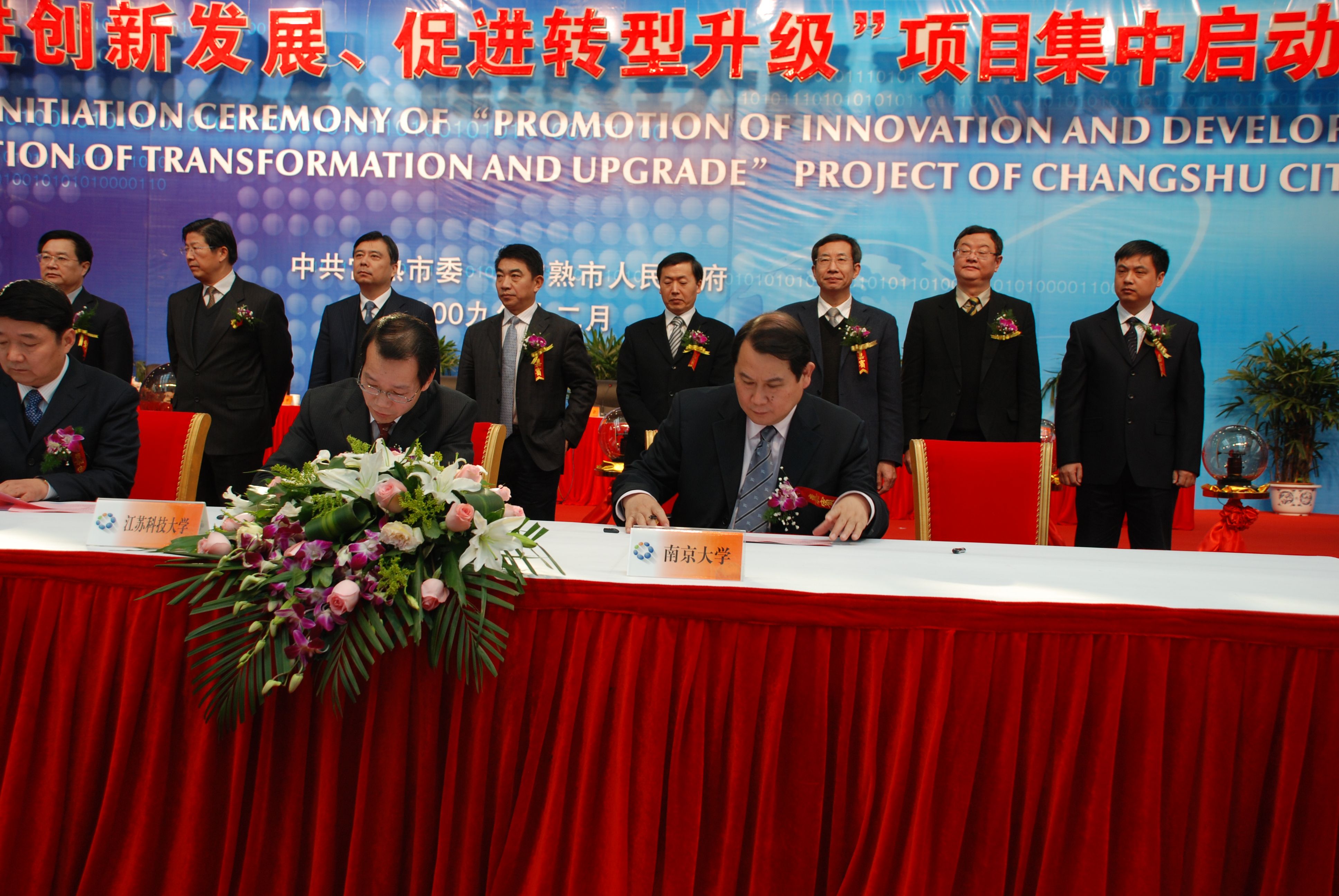 2009年12月27日,董事长助理张序余、系主任陈谦平、党委书记孙江林、常务副主任范金民等校系领导在常熟参加常熟“推进创新发展、促进转型升级”项目集中启动仪式,在仪式上,董事长助理张序余教授代表公司启动项目光球,陈谦平主任代表历史系签订了“太阳成tyc122cc常熟文化创意博士后工作站”协议。根据此项协议,今后我系每年可派出若干博士后研究人员常驻常熟,参与常熟的文化创意工作,将自己的所学服务地方经济建设。同时也为公司的文科发展开创了一条新的思路。 据悉常熟市此次"推进创新发展、促进转型升级"项目共包括总投资超过120亿元的14个重大项目和科技型项目在内,并与16所高校联合建办"常熟大学科技园"等。去年10月,常熟在江苏省率先启动科技特派员试点工作后,一批科技成果转化、合作攻关和人才培养项目相继启动,逐步建立了校地全面合作机制,与省内16所高校联合建办的大学科技园通过省级验收并正式启动,为增强常熟创新能力搭建了重要平台。